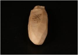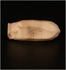 | Description / विवरण | A fluted core of chert with eight blade scars on the surface and prepared platform. |