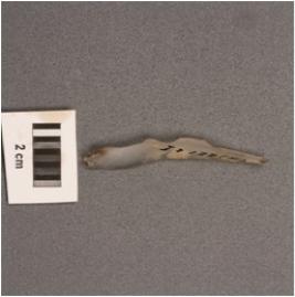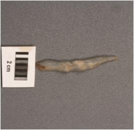 | Description / विवरण | Chalcedony point, slightly broken along distal end, prominent, wavy mid ridge on dorsal and cortex visible on dorsal side. |