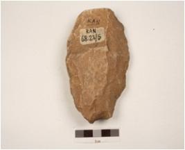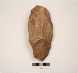| Description / विवरण | Handaxe made on quartzite flake, prepared platfor, bifacial with flake scars, wavy cutting edges, diamand shape section. |