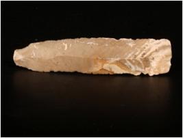 | Description / विवरण | A long parallel sided blade made on chert, with a long ridge on dorsal. Bulb on ventral, used ware marks on cutting edges and prepared platform. |