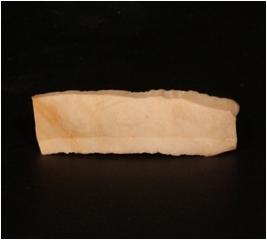| Description / विवरण | A blade of chert with two ridges on dorsal. Two parallel cutting edges and trapezoidal section. |