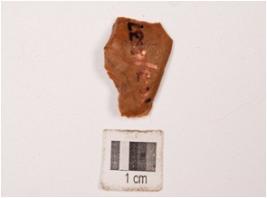 | Description / विवरण | A flake made on chert with flake scars on the surface, prepared platform, bulb on the ventral side and smooth surface. |