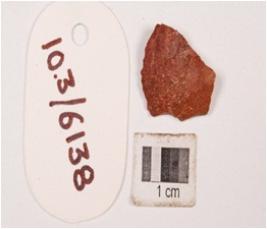 | Description / विवरण | A flake made on chert with a prepared platform, prominent bulb and irregular edges. |