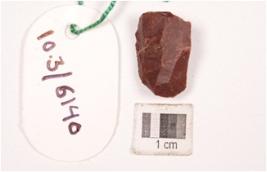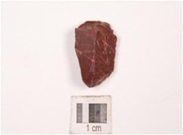 | Description / विवरण | A flake made on chert with flake marks on the surface, partly broken, smooth and polished surface. |