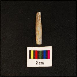 | Description / विवरण | Chalcedony blade with prominent mid ridge, triangular in section and broken at distal and proximal end. |