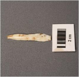 | Description / विवरण | Microlithic blade with double ridge on dorsal. Trapezoial in section and diffused bulb on ventral and use wear marks on cutting edges. |