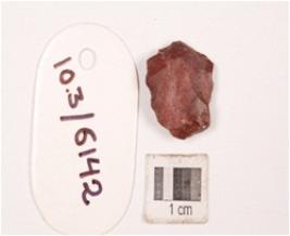 | Description / विवरण | A bifacial micro flake made on chert, it has prepared platform, diffused bulb, irregular round the edges and smooth surface. |