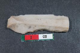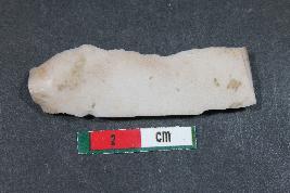 | Description / विवरण | Fragment of a Blade with two dorsal ridges having smooth surface. It also has bulb of percussion on the ventral side. |