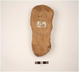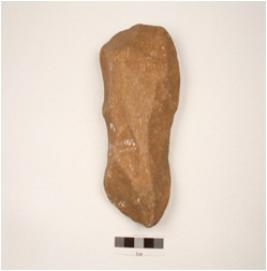 | Description / विवरण | Handaxe made on quartzite pebble, bifacial with flake scars, cutting edges, cortex visible on butt end. |