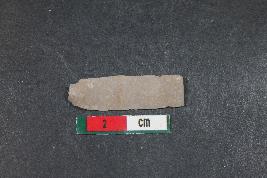 | Description / विवरण | Fragment of a blade with two dorsal ridges and a bulb of percussion on ventral side having smooth surface. |