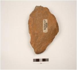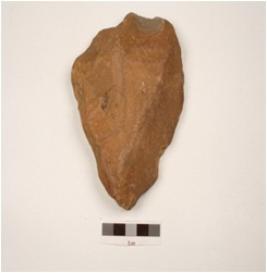 | Description / विवरण | Chopping tool made on quartzite pebble, unifacial with flake scars, wavy cutting edges. |