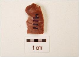 | Description / विवरण | A blade, made on chert with prominent mid-ridge on dorsal side, prepared platform, bulb on ventral, use-wear marks on cutting edge, triangular in section and broken along distal end. |