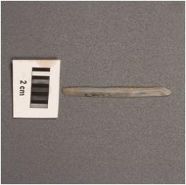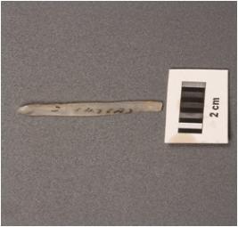 | Description / विवरण | Parallel sided chalcedony blade, with mid ridge on dorsal and diffused bulb on ventral and use wear marks on edge. |