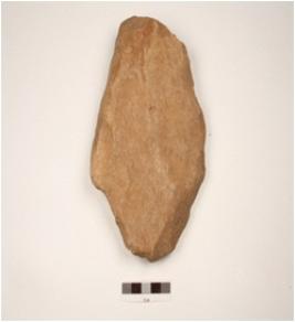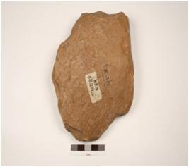 | Description / विवरण | Scraper made on quartzite flake with prepared platform, flake scars on dorsal side and prominent bulb on ventral side, retouched marks along cutting edge. |