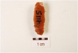 | Description / विवरण | A blade, made on chert with prominent mid-ridge on dorsal side, prepared platform, bulb on ventral, use-wear marks on cutting edge and triangular in section. |