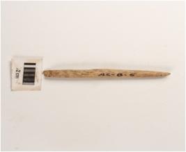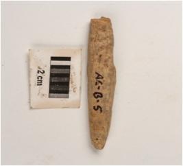 | Description / विवरण | A bone point long in shape and polished surface, chipped off on surface. Broken from tip and base. |