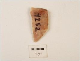 | Description / विवरण | A blade made on chert, knife shaped, use wear edges, flake scars on dorsal surface and flat ventral. |