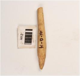 | Description / विवरण | A point made on bone, surface is glossy and long tapered in shape. Sharp intact tip but head is missing, chisel marks on surface. |