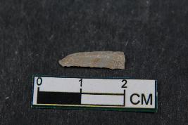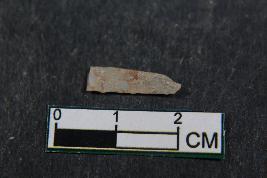 | Description / विवरण | A fragment of blade having two dorsal ridges, bulb of percussion on ventral side and smooth surface. |