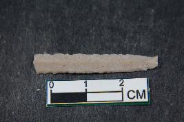 | Description / विवरण | A blade having one dorsal ridge, serrated edges and smooth surface. |