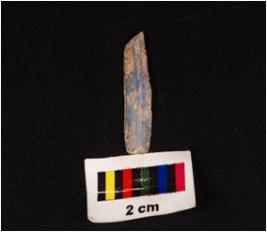 | Description / विवरण | A blade with two ridge on doral trapezoidal section, use-wear marks along the cutting edges and distal end broken. |