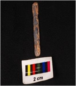| Description / विवरण | Parallel sided blade with a mid-ridge on dorsal triangular section, use-wear marks along the cutting edges and raw material was given heat treatment. |