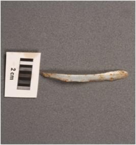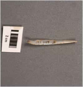 | Description / विवरण | Parallel sided microlithic blade with use-wear marks on cutting edges, prominent bulb on ventral and mid ridge on dorsal. |
