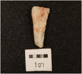 | Description / विवरण | A knife shaped blade made on quartzite stone, ridge on surface with use wear edges. |