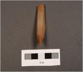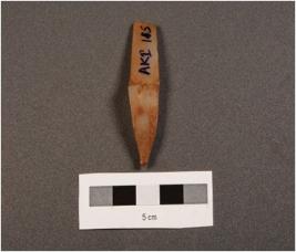| Description / विवरण | Parallel sided chalcedony point with double ridge on dorsal. Trapezoid in section, prepared platform, pointed one end and broken distal end. |