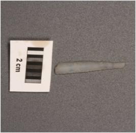 | Description / विवरण | A point made on chalcedony blade, mid ridge on dorsal surface, triangular section and used wear marks on cutting edges. |