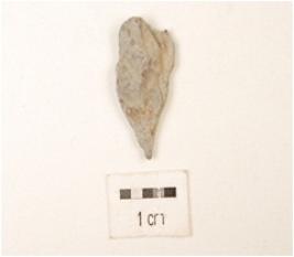 | Description / विवरण | A blade made on chert, flake scars on dorsal, use wear edges and pointed tip. |