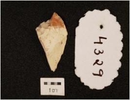 | Description / विवरण | A flake made on chert flake scars on one side and irregular cutting edges. |