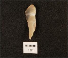 | Description / विवरण | A chalcedony blade with use wear edges, single ridged and pointed tip. |