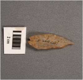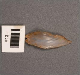 | Description / विवरण | Point made on chalcedony blade, prepared platform, prominent bulb on ventral and sharp edges. |