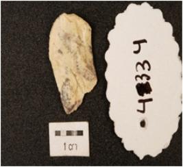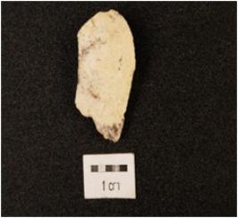 | Description / विवरण | A blade made on chert, use wear edges, diffused bulb on ventral side, prepared platform and flake scars visible on the surface. |