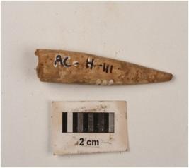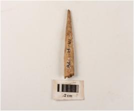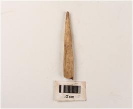 | Description / विवरण | A bone point with intact tip and head is missing, chisel marks on surface and rough. |