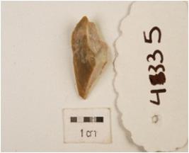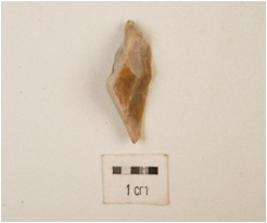 | Description / विवरण | A flake made on chert and flake scars visible on both sides. |