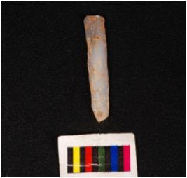 | Description / विवरण | Parallel sided blade, made of chalcedony two ridge on dorsal ventral is smooth with diffuse bulb use wear marks on edge. |