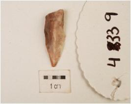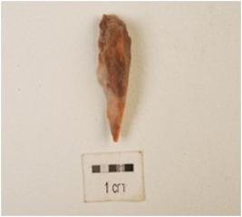 | Description / विवरण | A blade made on chert, pointed tip, single ridged and use wear edges. |