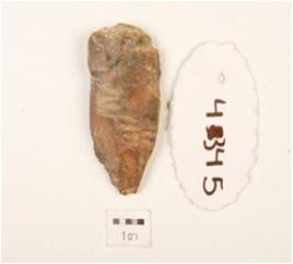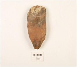 | Description / विवरण | A flake made on chert prominent bulb and flake scars visible on one side. |