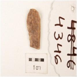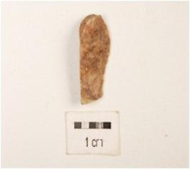 | Description / विवरण | A blade made on chert, prominent bulb on ventral side, use wear edges and rough surface. |