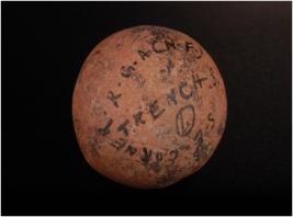 | Description / विवरण | Handmade fragmented terracotta sling ball, circular in shape, smooth surface, well baked, made up of fine clay, traces of red slip on surface. |