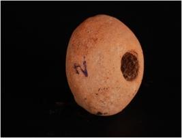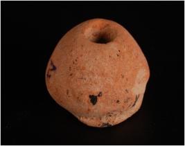 | Description / विवरण | Handmade fragmented of a sling ball, circular in shape with coarge surface, made with fine clay, well baked, dull red in colour. Crudely modelled, uneven surface. |