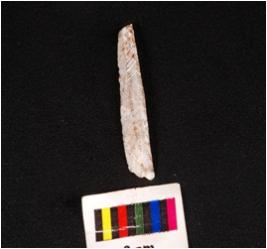 | Description / विवरण | Parallel sided blade with double ridge on dorsal partly broken proximal end diffused bulb, broken from distal end and use-wear marks along the cutting edge. |