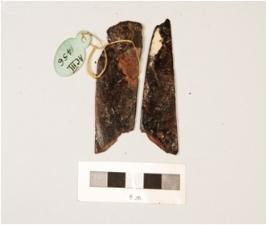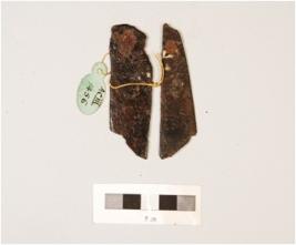 | Description / विवरण | Knife blade with one end pointed, corroded surface, sharp working edge. |