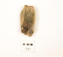 | Description / विवरण | A flake made on chert, flake scars visible on one side and uneven surface. |