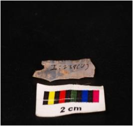 | Description / विवरण | A parallel sided blade made of chalcedony with a ridge on the dorsal diffused bulb on ventral trapezoidal in section and broken at distal end. |