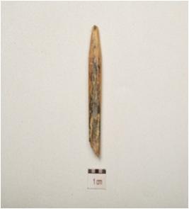 | Description / विवरण | Bone point, pointed both ends, slightly chipped off from surface, smooth and polished surface. |