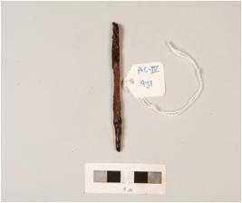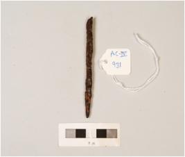 | Description / विवरण | Iron nail, fragment, square cross section, head and pointed part broken, corroded surface. |