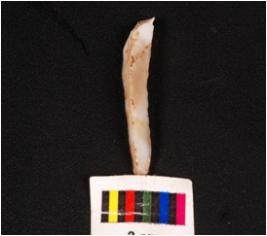 | Description / विवरण | Parallel sided blade with a ridge on dorsal broken along the proximal end, diffused bulb on ventral distal end intact, raw material given heat treatment and use-wear marks along cutting edge. |